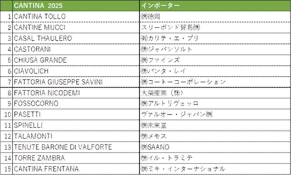 アブルッツォワイン・バイ・ザ・グラス・キャンペーン2025”参加生産者&インポーター(予定)